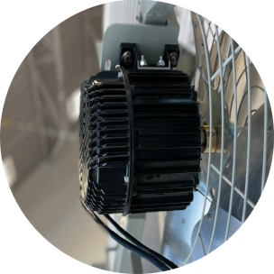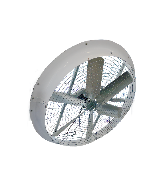 大風量を広範囲に拡散・攪拌させる設計。開放的な空間での空気循環を重視します。