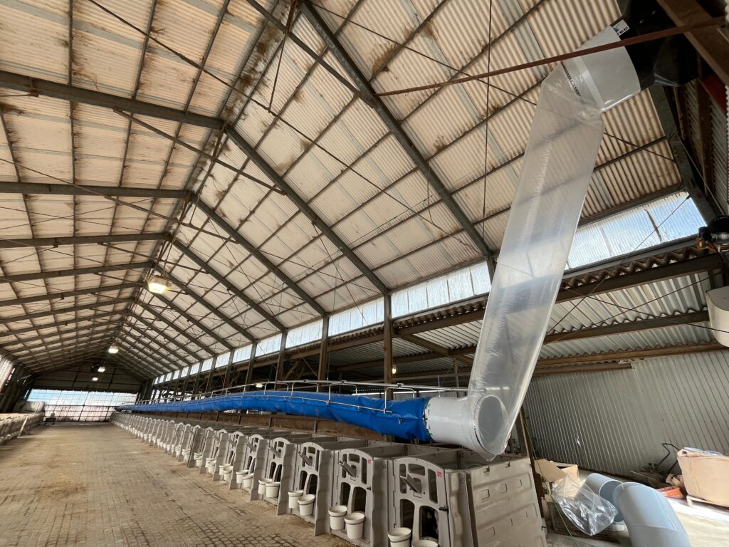▼天井の低い密閉型牛舎の場合